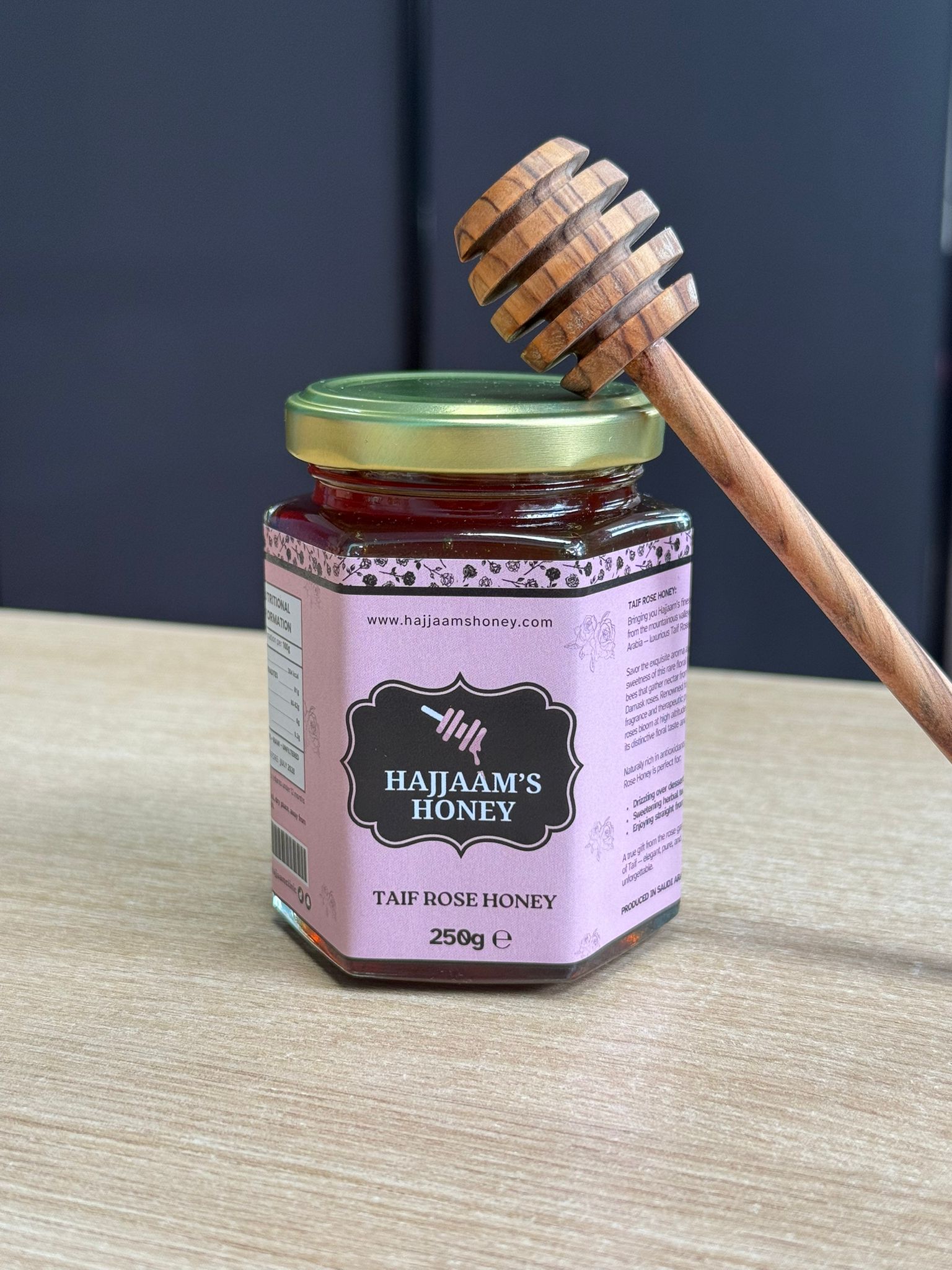 Hajjaam’s Taif Rose Honey is one of the finest floral honeys from the blessed lands of Saudi Arabia. Harvested in the high-altitude rose valleys of Taif, this luxurious honey is created by bees that forage on the nectar of the world-famous Taif Damask roses. The result is a rare honey with a unique floral aroma, golden color, and naturally sweet taste.